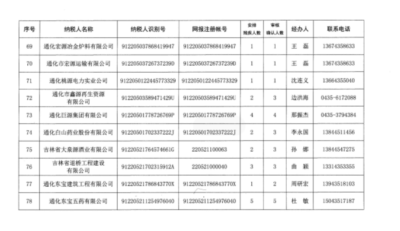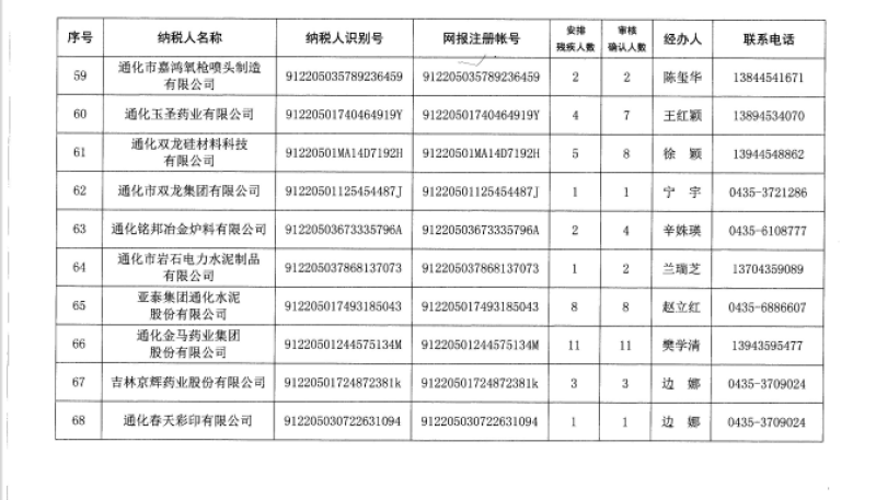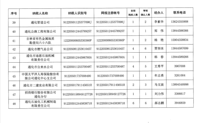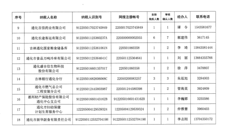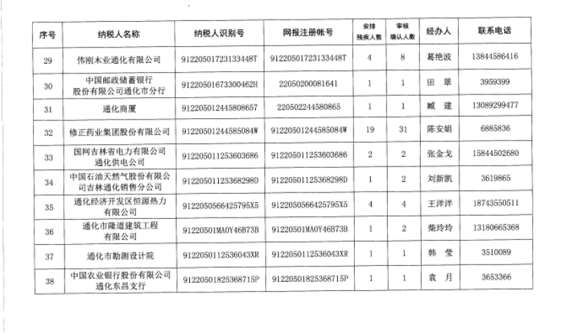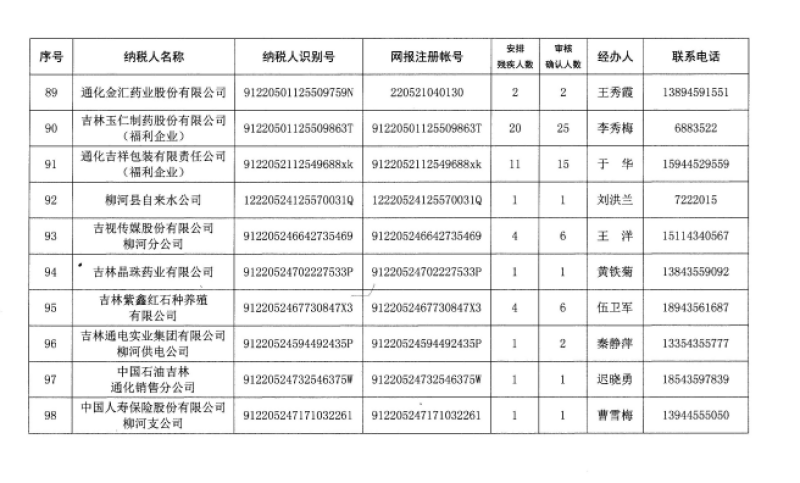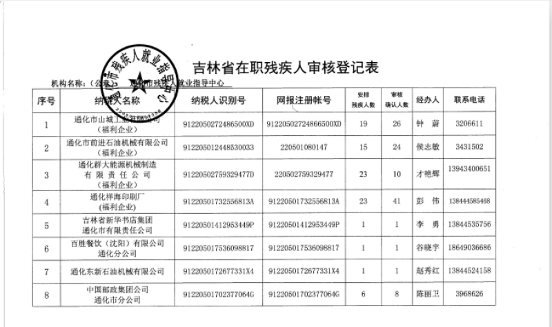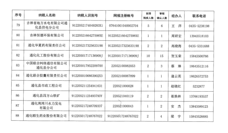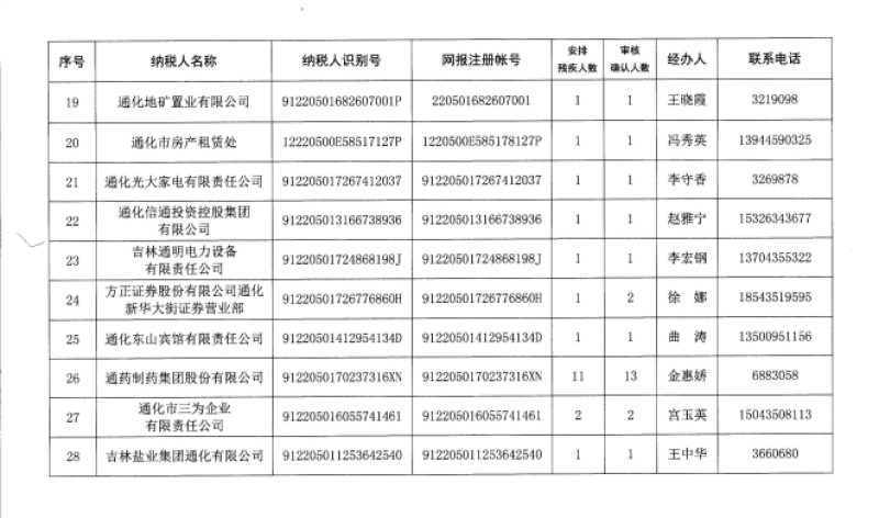 2019年通化市用人單位安排殘疾人就業(yè)公示