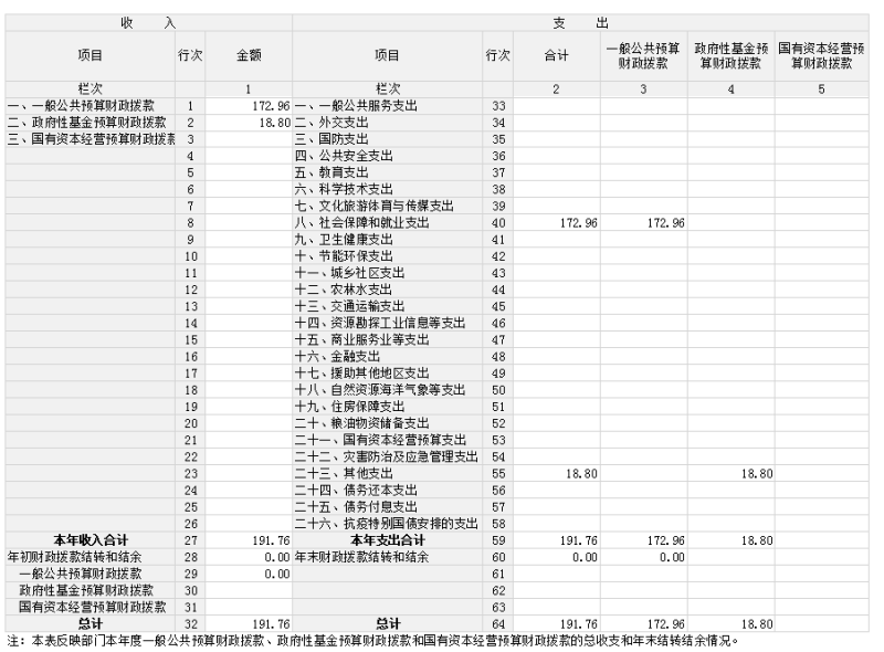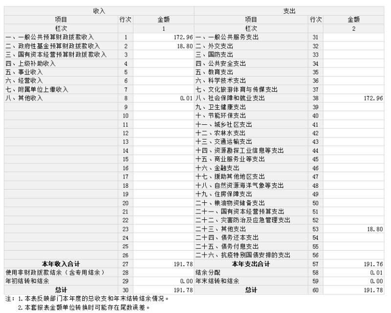 2024年度收、支總計均為191.78萬元。與2023年度相比,收、支總計各增加8.5萬元,增長4.64%。主要原因:基本支出中人員經(jīng)費支出增加。