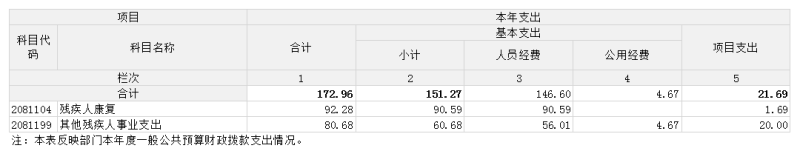 2024年度一般公共預(yù)算財政撥款支出172.96萬元,主要用于以下方面:社會保障和就業(yè)支出(類)支出172.96萬元,占100%。