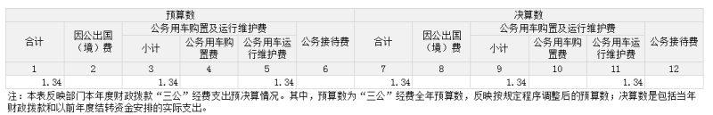 公務(wù)用車運行維護費支出1.34萬元,主要是車輛年檢、保險、維護維修、燃油費、通行費。