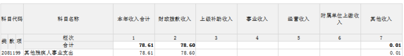 本年支出合計(jì)78.6萬(wàn)元,其中:基本支出78.03萬(wàn)元,比上年增加19.75萬(wàn)元,增加33.9%,增加人員基本支出;項(xiàng)目支出0.57萬(wàn)元,比上年減少0.36萬(wàn)元,下降38.7%,主要是當(dāng)年假肢材料采購(gòu)減少;上繳上級(jí)支出0萬(wàn)元,比上年增加(減少)0萬(wàn)元,增長(zhǎng)(下降)0%;經(jīng)營(yíng)支出0萬(wàn)元,比上年增加(減少)0萬(wàn)元,增長(zhǎng)(下降)0%;對(duì)附屬單位補(bǔ)助支出0萬(wàn)元,比上年增加(減少)0萬(wàn)元,增長(zhǎng)(下降)0%。