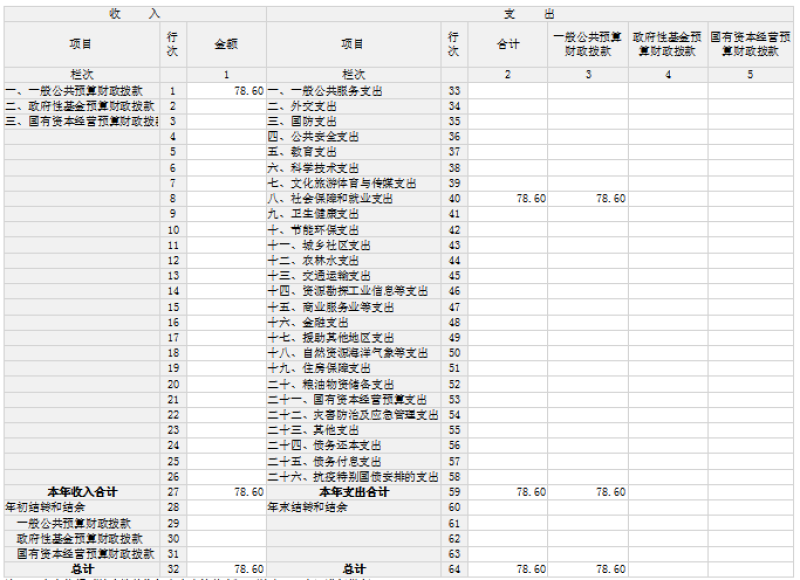 2024年度一般公共預(yù)算財(cái)政撥款支出78.6萬(wàn)元,主要用于:社會(huì)保障和就業(yè)支出78.6萬(wàn)元,占100%。