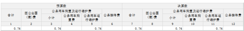 公務(wù)用車運(yùn)行維護(hù)費(fèi)支出0.74萬(wàn)元。